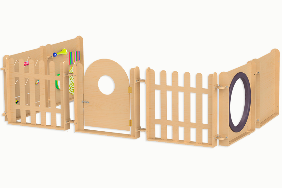 На панелях крепятся элементы разнообразной тематики (музыкальные, механические, тактильные, световые, оптические и т.д.).